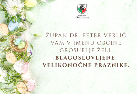 Župan Občine Grosuplje dr. Peter Verlič vsem občanom v imenu občine želi blagoslovljene in mirne velikonočne praznike. Naj bodo prazniki čas veselja, druženja in povezovanja med prebivalci.